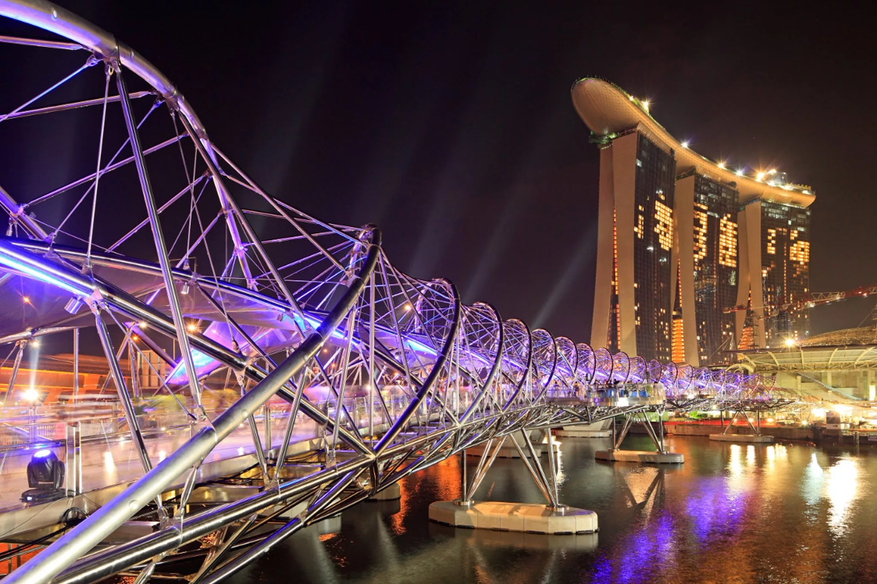 В футуристическом районе Марина-Бэй изящной стальной лентой извивается пешеходный мост «Хеликс» – одно из самых необычных сооружений города-государства. Открытый в 2010 году, этот 280-метровый шедевр в форме двойной спирали, созданный совместно австралийскими и сингапурскими архитекторами, воплощает саму суть жизни – структуру человеческой ДНК.