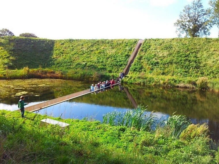 В нидерландском Форт-де-Рувер (XVII век) в 2011 году появился мост, который буквально разрезает воду, как в легенде о пророке Моисее.