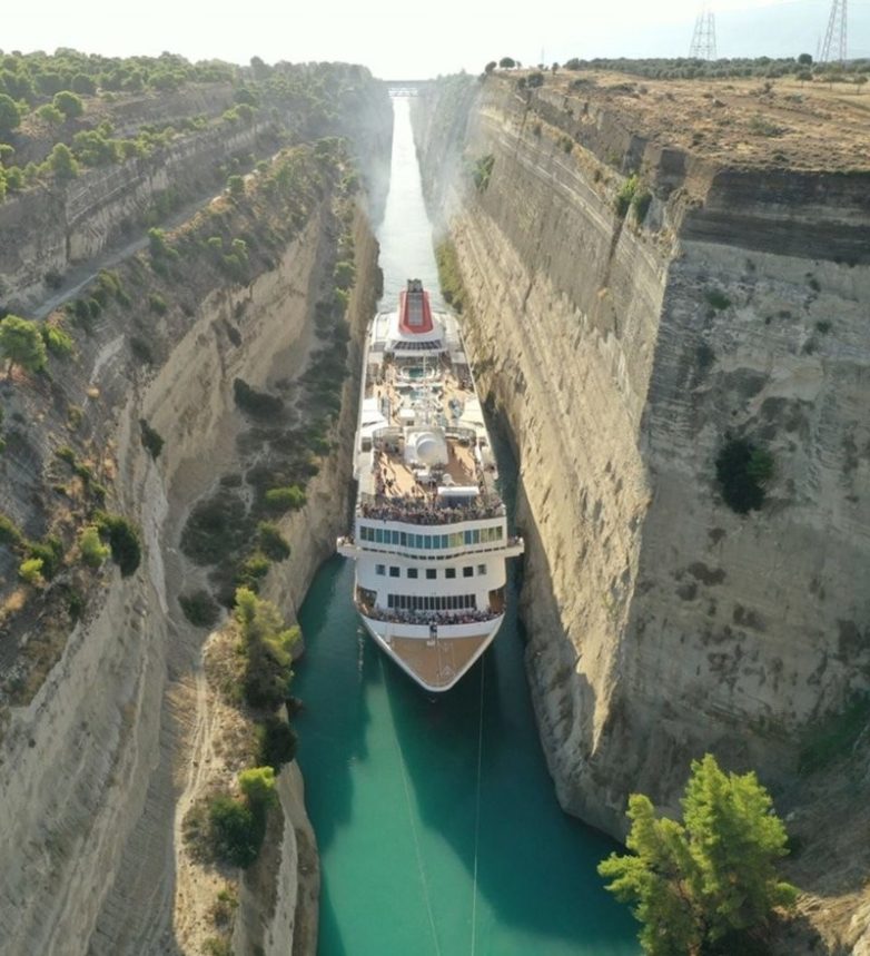 16. Огромный круизный лайнер проходит через Коринфский канал, Греция