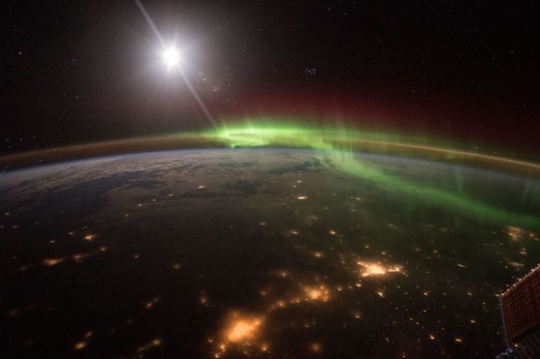 9. Аврора Аустралис, также известная как южное сияние, вид с Международной космической станции