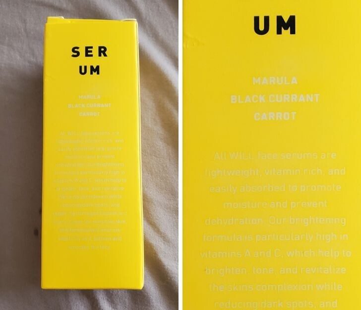 7. Как вообще можно додуматься печатать текст цветом, который сливается с оттенком упаковки?