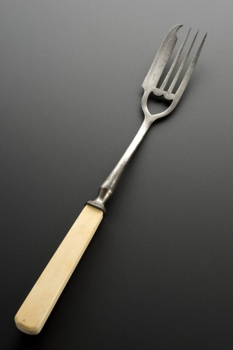 Комбинированный нож и вилка из стали и слоновой кости, принадлежавшие офицеру британского Королевского флота Ричарду Гриндаллу, ~1795–1820 годы