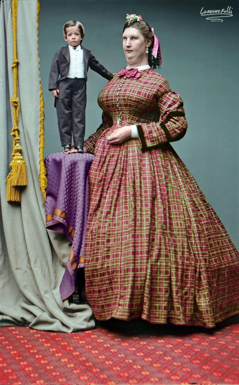 Анна Свон, великанша из Новой Шотландии, с королём лилипутов