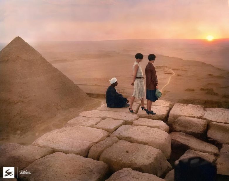 Туристы на вершине пирамиды Хеопса (1920-е годы). Фотография Джорджа Ринхарта