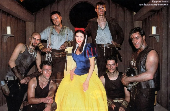 Rammstein и русская модель Юлия Степанова сыгравшая роль Белоснежки в клипе Sonne, 2001.