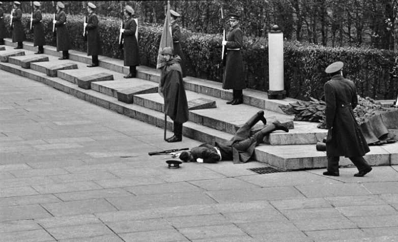 Солдат роты почетного караула, упавший в обморок при церемонии возложения венков к могиле неизвестного солдата.