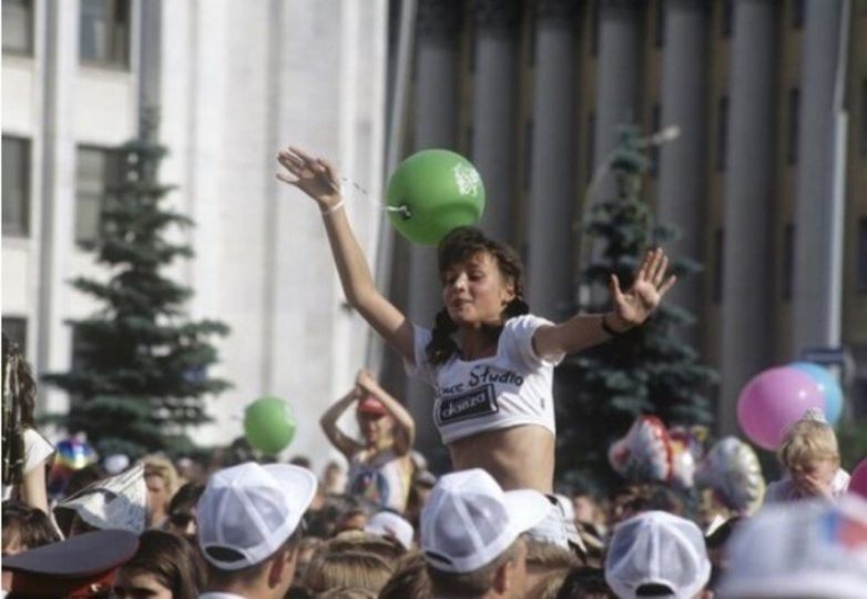 Девушка на праздновании Дня независимости России. Москва, 1996 год.