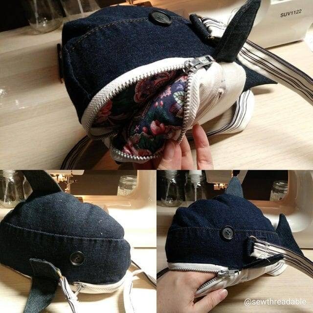 17. Акула-пенал из старых джинсов, пуговиц, молнии и обрезков ткани
