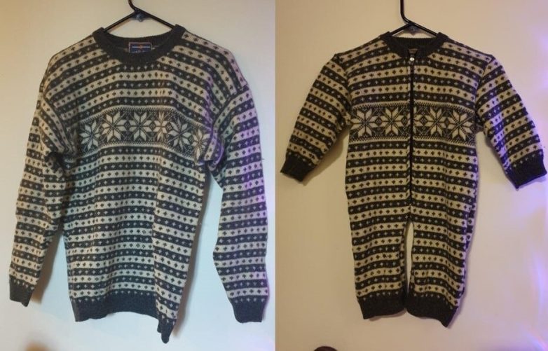 10. «Свитер, который никто не носил с 1996 года + молния = комбинезон для малыша»