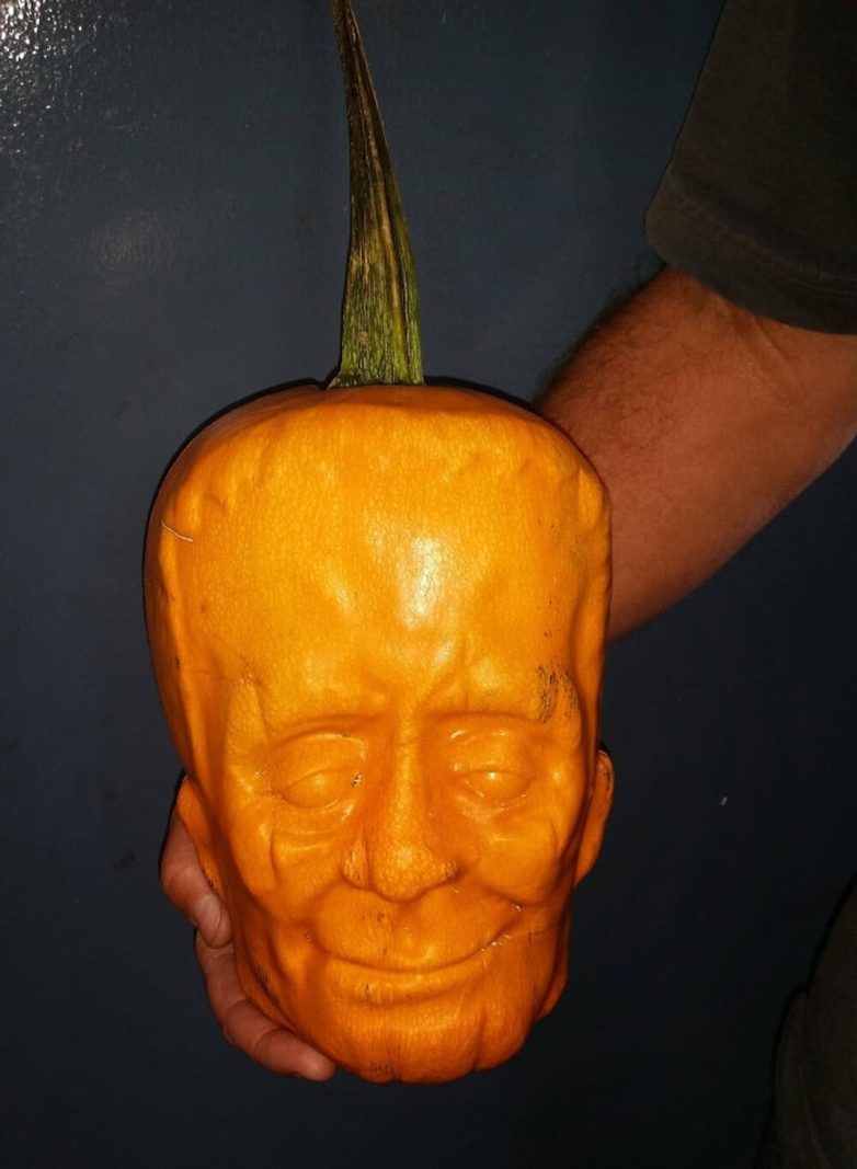 1. Если поместить завязь тыквы в пластиковую форму, то можно вырастить такое милое тыквенное чудовище Франкенштейна