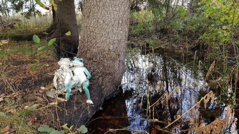 Кто-то уместил эту парочку у пруда прямо посреди леса
