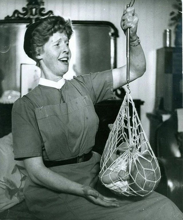 На фотографии медсестра Катриона Макаскилл взвешивает ребенка. Снимок сделан в 1959 году на острове Норт-Уист, Шотландия.