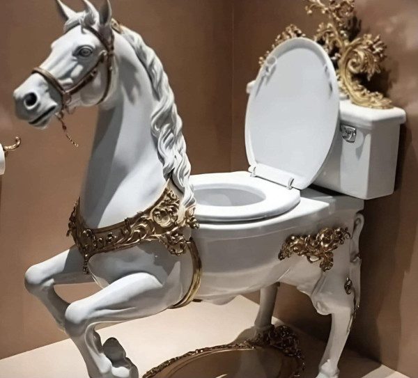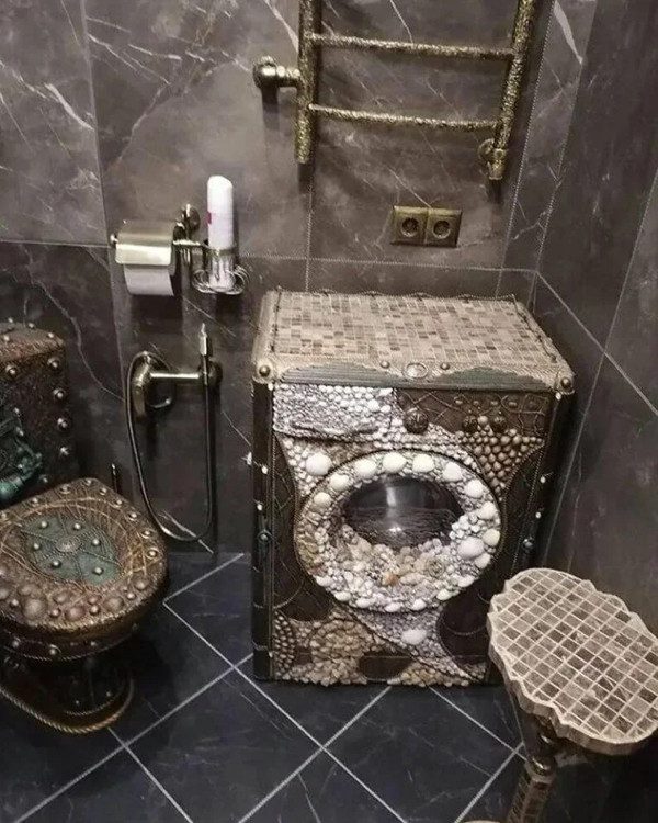 Здесь вы увидите и покосившиеся полки, и золотые унитазы с претензией на роскошь, и балконы, решившие отделиться от владельца, и вёдра с краской, которые буквально почувствовали свободу.