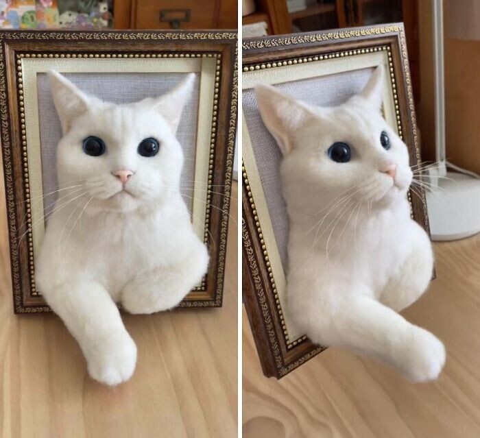 1. Объёмный потрет кошки из шерсти