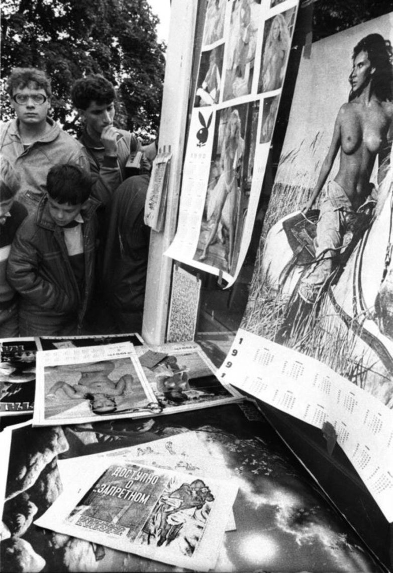 Киоски на Колхозной площади. Очередь за сигаретами. Москва,1990 год.