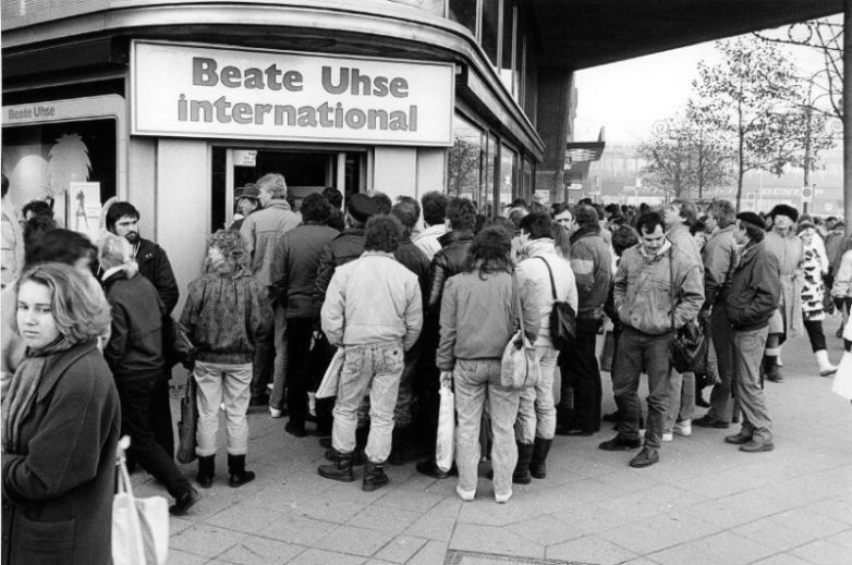 Очередь у первого секс–шопа «Беате Узе» в ГДР, декабрь 1989 год, Берлин