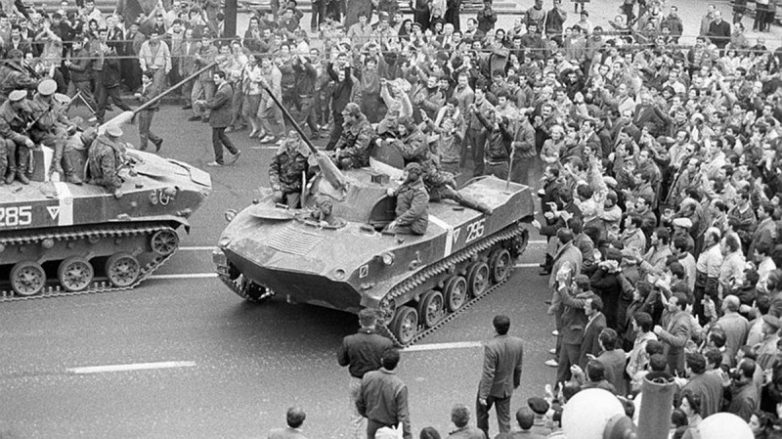 Толпы москвичей наблюдают за военными действиями у Белого дома. Москва. 4 октября 1993 г.