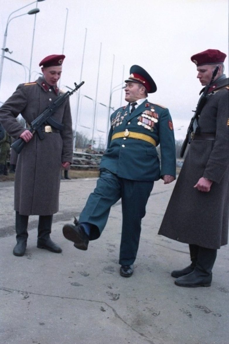 Во время репетиции парада Победы на плацу дивизии особого назначения МВД России, 1995 год.