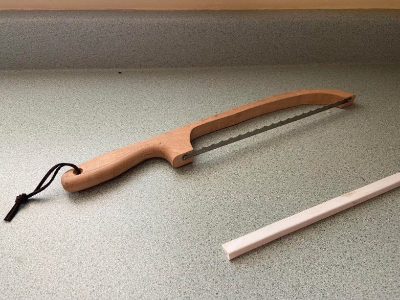 Это специальный нож для хлеба, который позволяет нарезать его одинаковыми кусочками.