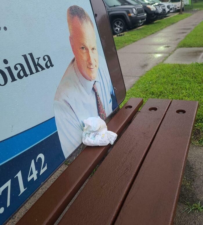 12. Кто-то оставил грязный подгузник на автобусной остановке