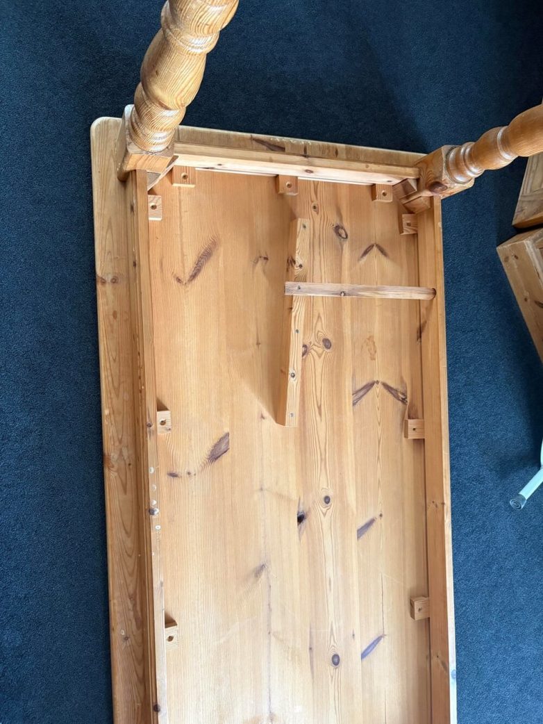 9. Зачем нужен кусок дерева, прибитый гвоздями к нижней части столешницы старого соснового стола?