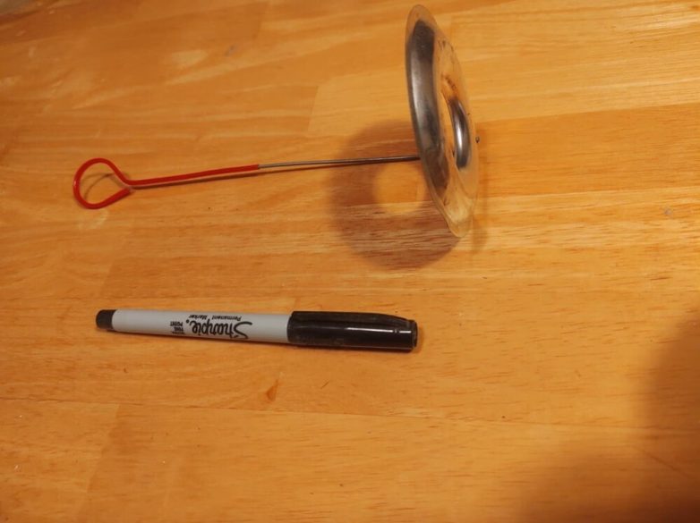 9. Кухонный инструмент в виде металлического кольца на ручке, покрытой пластиком