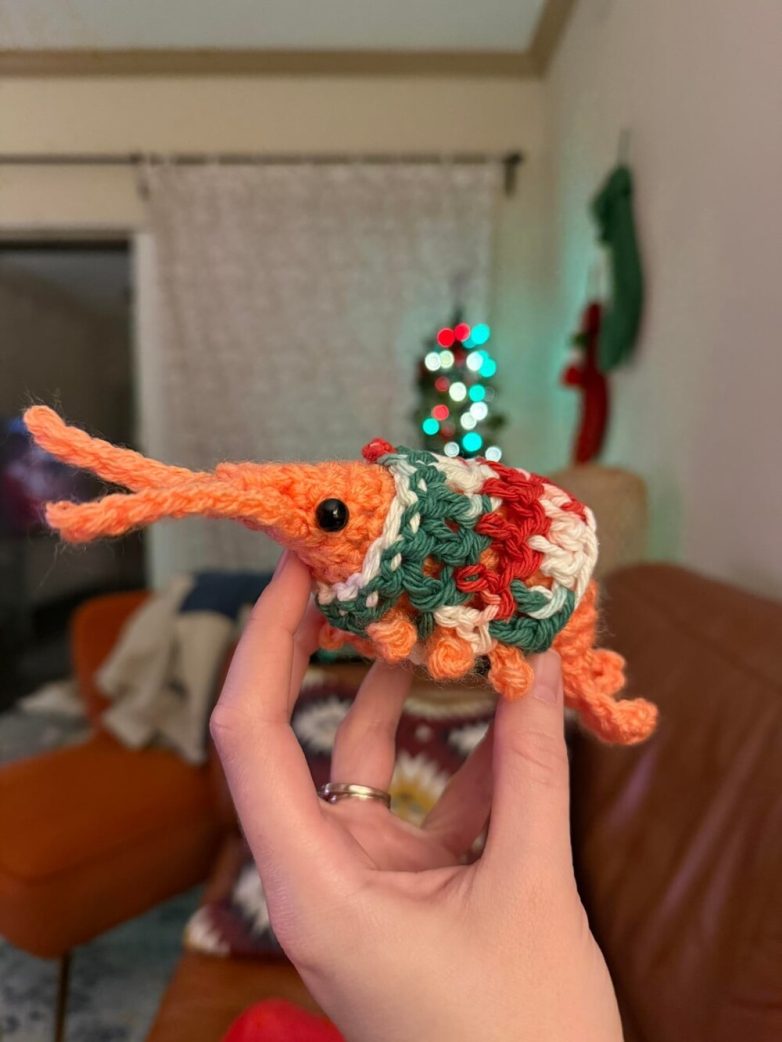 17. Все домочадцы получили эмоциональную поддержку — креветку в праздничном свитере