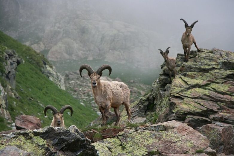 15. Кавказские туры расслабленно рассматривают окрестности Тебердинского заповедника — государственного природного биосферного заповедника в Карачаево-Черкесской Республике