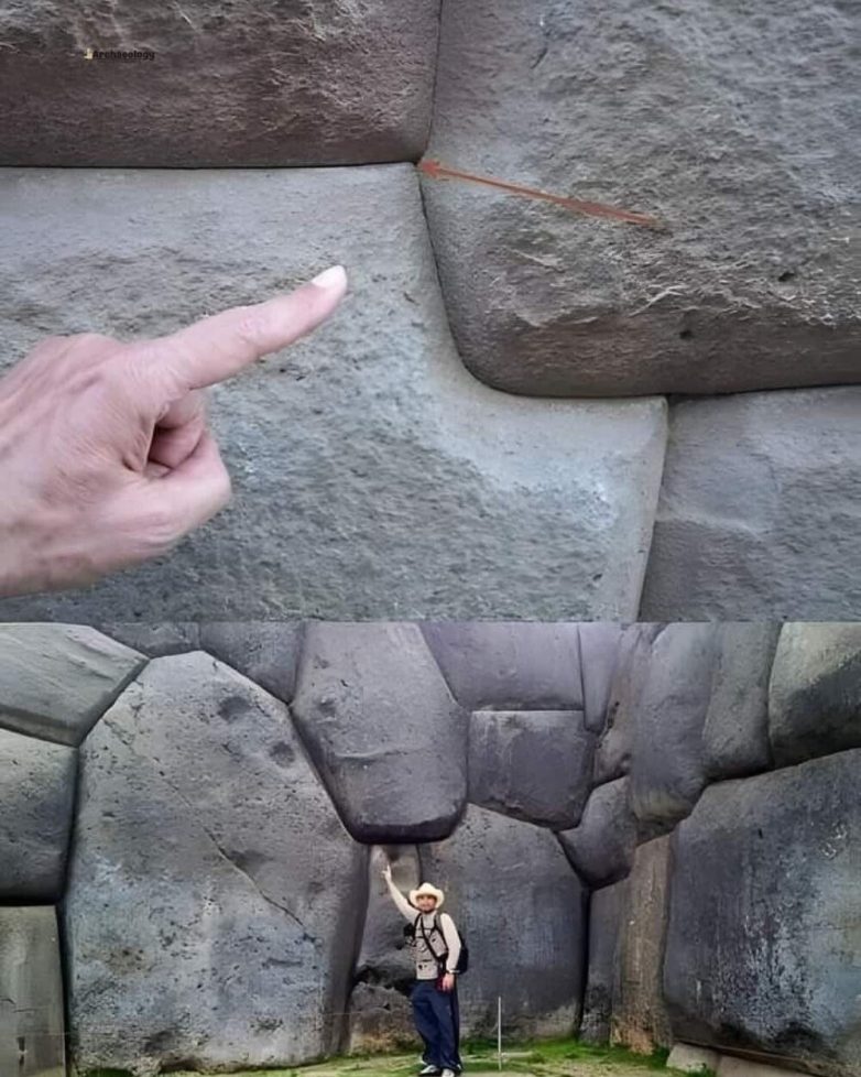 Каждый камень (а некоторые весом более 100 тонн) был мастерски обтёсан, чтобы идеально прилегать кдругому камню без раствора, а стыки настолько плотные, что между ними с трудом можно просунуть лист бумаги.