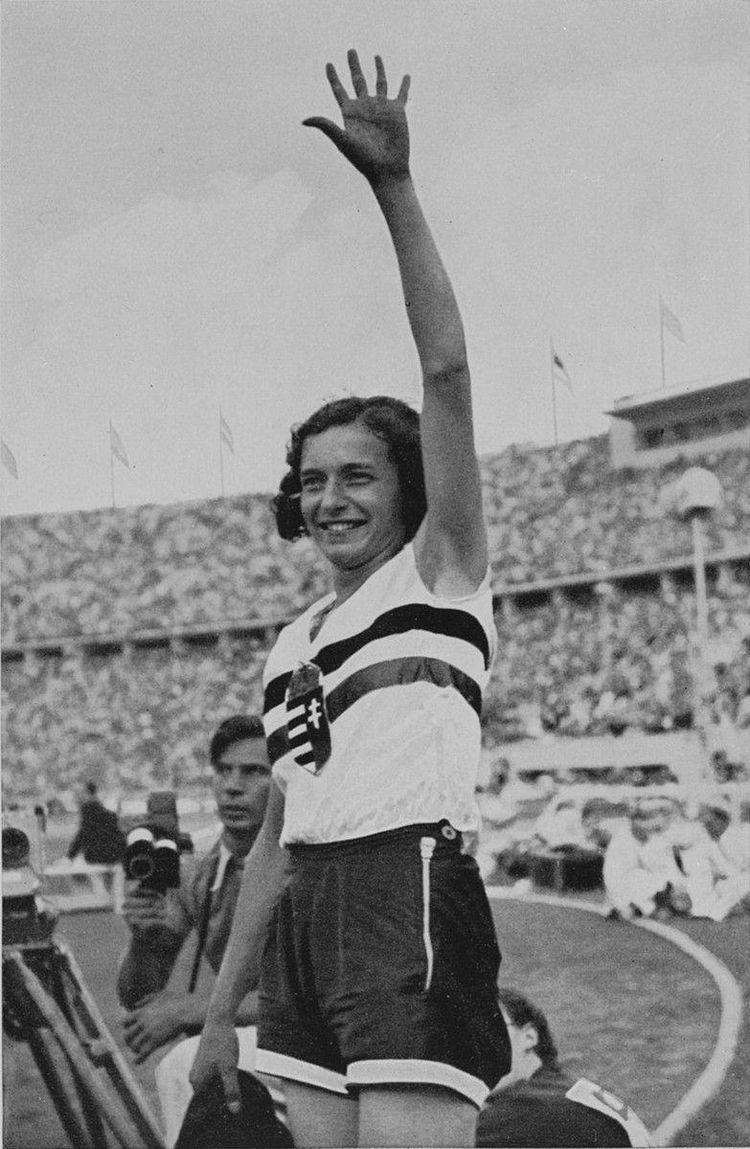 Иболя Чак, венгерская еврейка, завоевавшая золотую медаль в прыжках в высоту среди женщин на летних Олимпийских играх 1936 года в Берлине, нацистская Германия