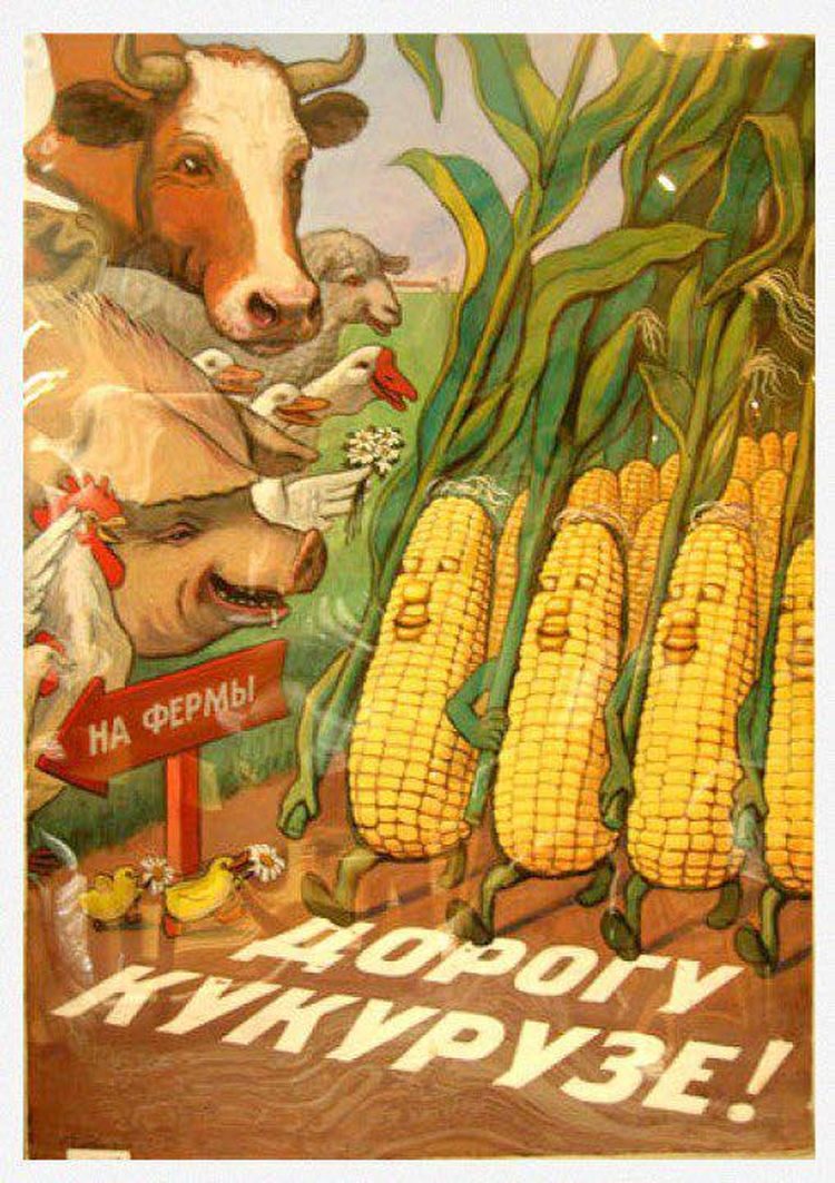 Советский плакат с надписью «Дорогу кукурузе!», эпоха Хрущёва, 1960-е годы