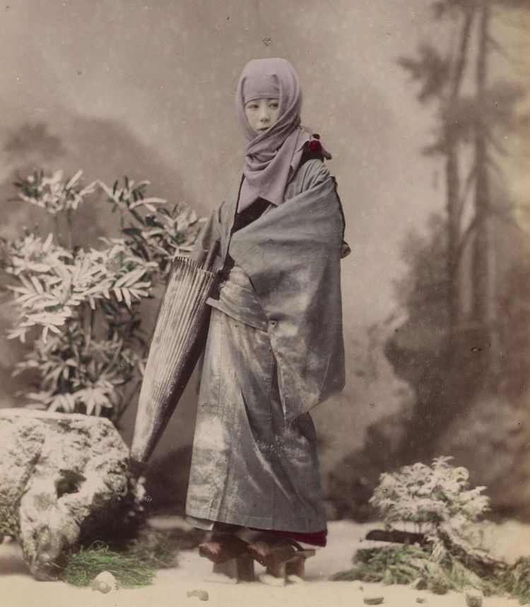 Женщина в зимней одежде с зонтом. Япония, 1890 год