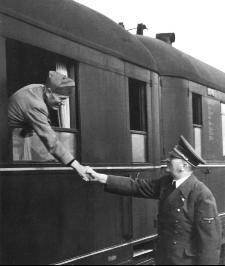 Гитлер прощается с Муссолини (они больше никогда не встретятся). Германия, 1944 год