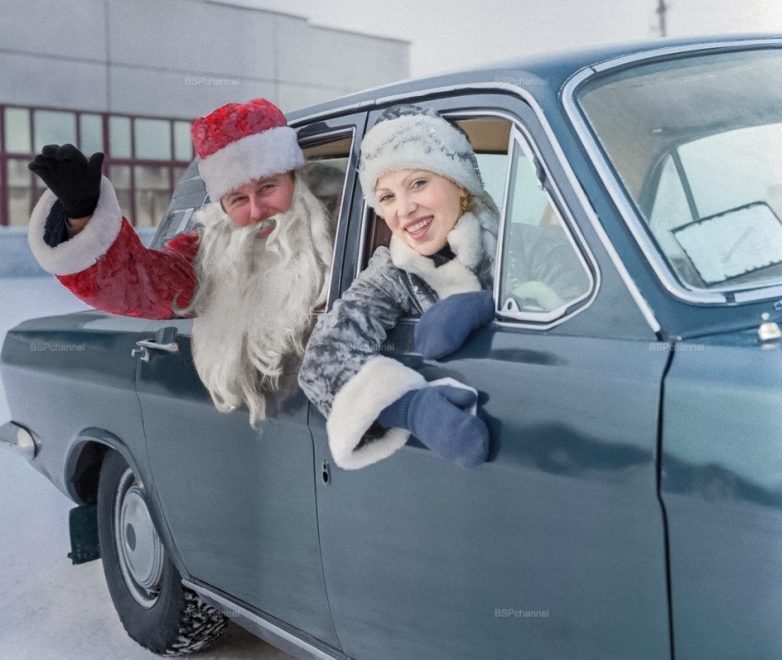 Дед Мороз и Снегурочка в «Волге», 1984 год.