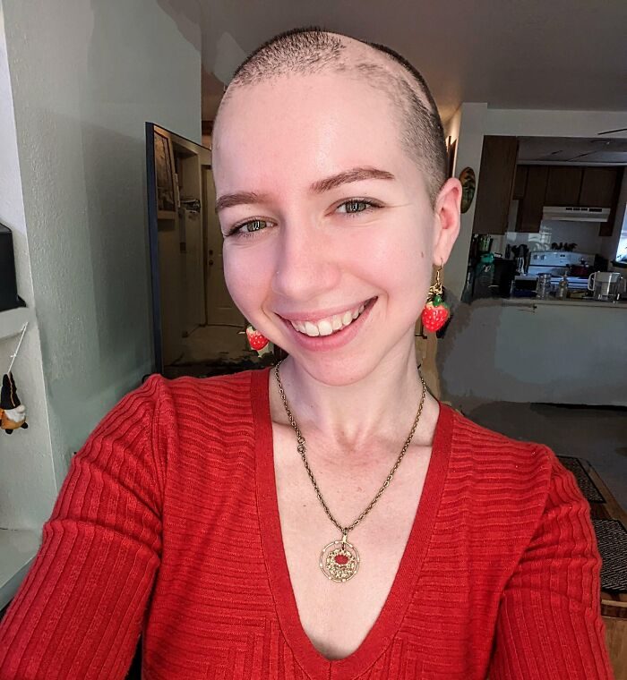 8. «Я больше не принимаю лекарства от алопеции из-за сильных побочных эффектов. Я решила смириться с тем, что буду принцессой с неравномерной растительностью на голове, и меня это устраивает»