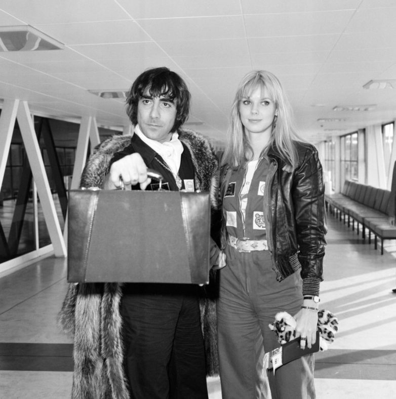 12 ноября 1975 года. Лондон, аэропорт Хитроу. Кит Мун, барабанщик The Who со своей девушкой. Фото Victor Crawshaw.
