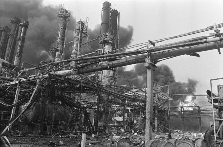 8 ноября 1975 года. Бек, провинция Лимбург, Нидерланды. Последствия взрыва установки каталитического крекинга на нефтеперегонном заводе. 14 человек погибли, 109 ранено. Пожар продолжался 5 дней.