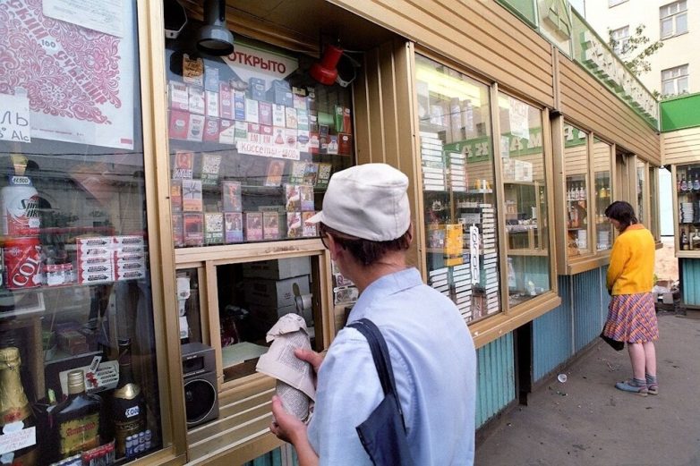 Москва. Ларьки около станции метро «Парк Культуры».