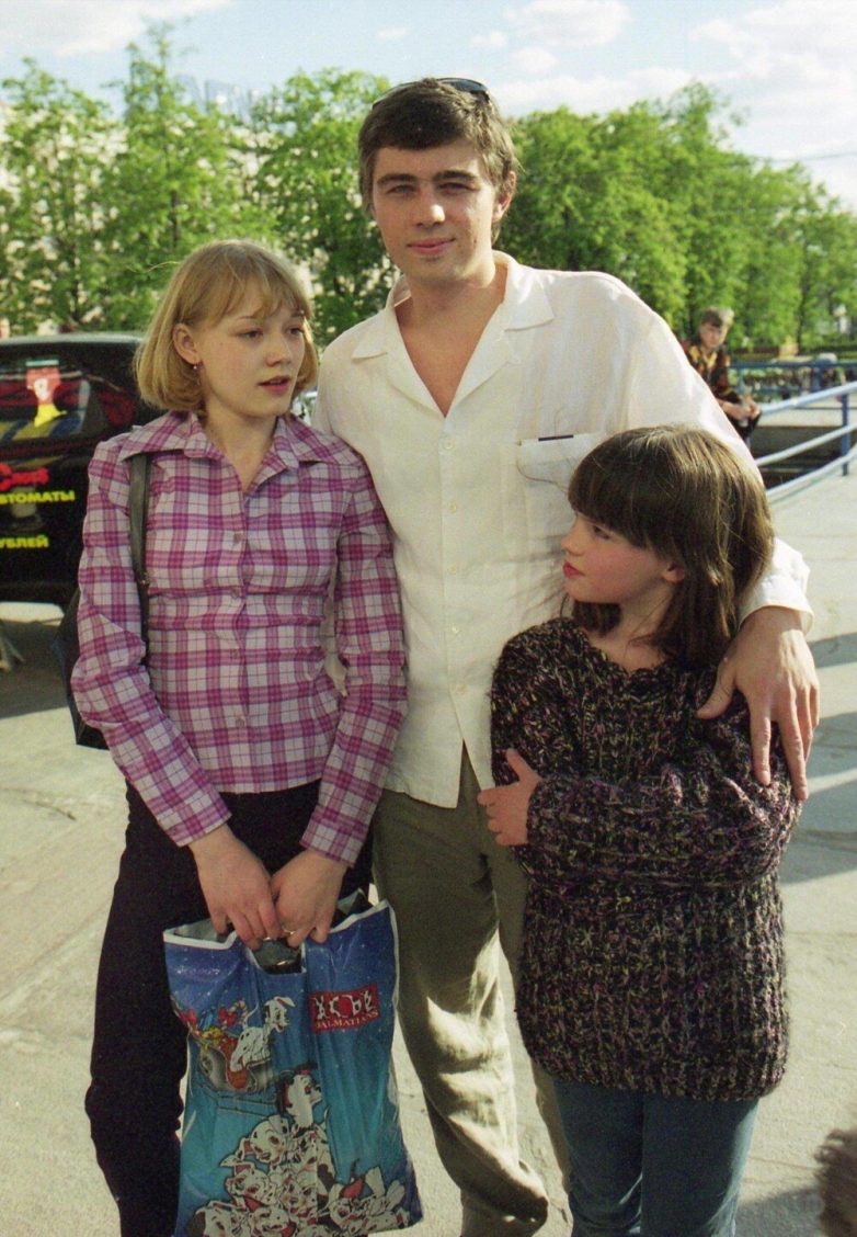 Сергей Бодров, Оксана Акиньшина и Екатерина Горина на съемках фильма «Сестры», 2001