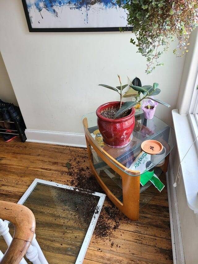 Ветер буквально выбил моё окно, а вместе с ним и два моих любимых растения