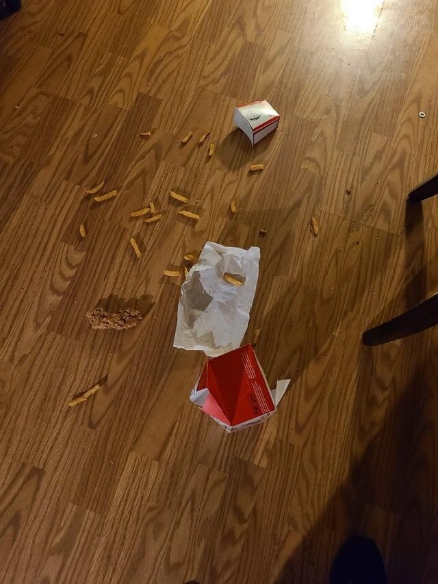 Вернулся домой после тяжёлого рабочего дня и тут же уронил свой ужин