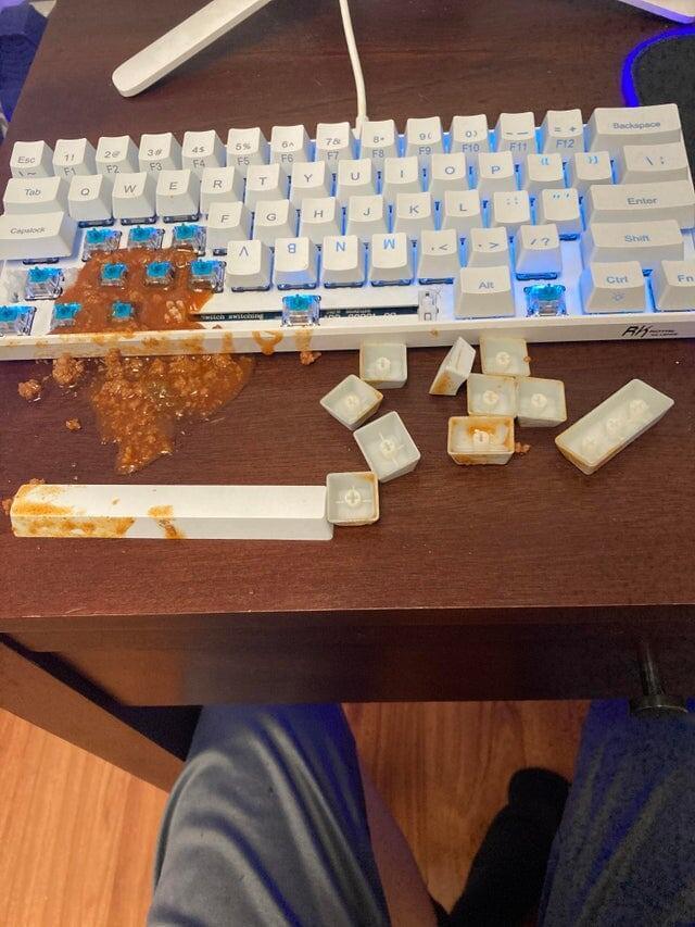 Сестра разлила чили на клавиатуру, которую я купил за 90 долларов на прошлой неделе