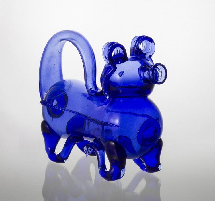 15. Кувшин в форме собаки, изготовленный из кобальтово-синего стекла. Из Трансильвании, 1700 г. н.э., в настоящее время хранится в Музее прикладного искусства в Будапеште, Венгрия