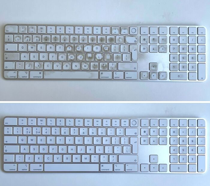 13. «Клавиатура, которая долгое время была в таком состоянии, была очищена изопропиловым спиртом и чистой тряпкой — так просто, быстро и эффективно!»