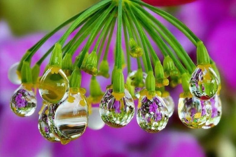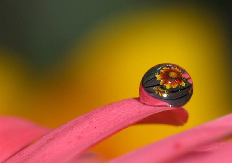 Обычная капля росы превращается в хрустальный шар, отражающий окружающий пейзаж. Поверхность листа становится фантастическим лабиринтом из прожилок и текстур, а крыло бабочки трансформируется в сияющую мозаику из тысяч переливающихся чешуек.