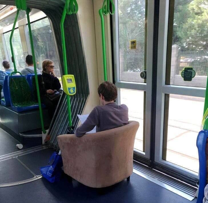 Прихватил собой кресло на случай, если не окажется свободных мест