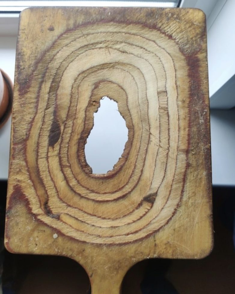 Бабушка пользовалась этой доской больше 30 лет, но выкидывать ее не соглашается даже с такой дыркой