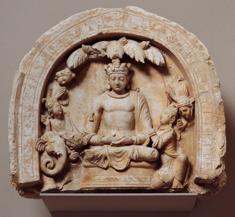 13. Архитектурная ниша с изображением Шакьямуни в окружении приверженцев и слона. Хадда, Афганистан, IV–V век н. э.