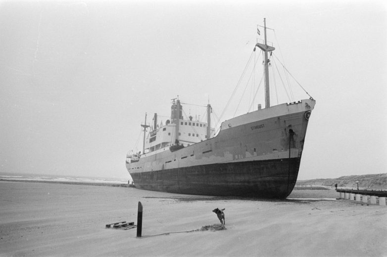 9 января 1976 года. Нидерланды, провинция Южная Голландия. Stardust, выброшенный на берег во время шторма.