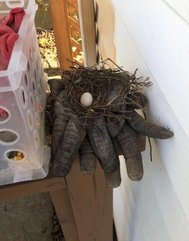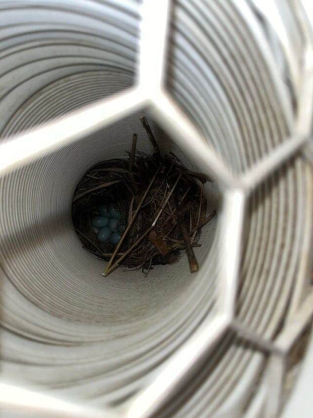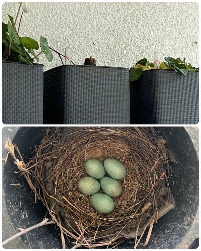 Птица свила гнездо в одном из наших пустых цветочных горшков